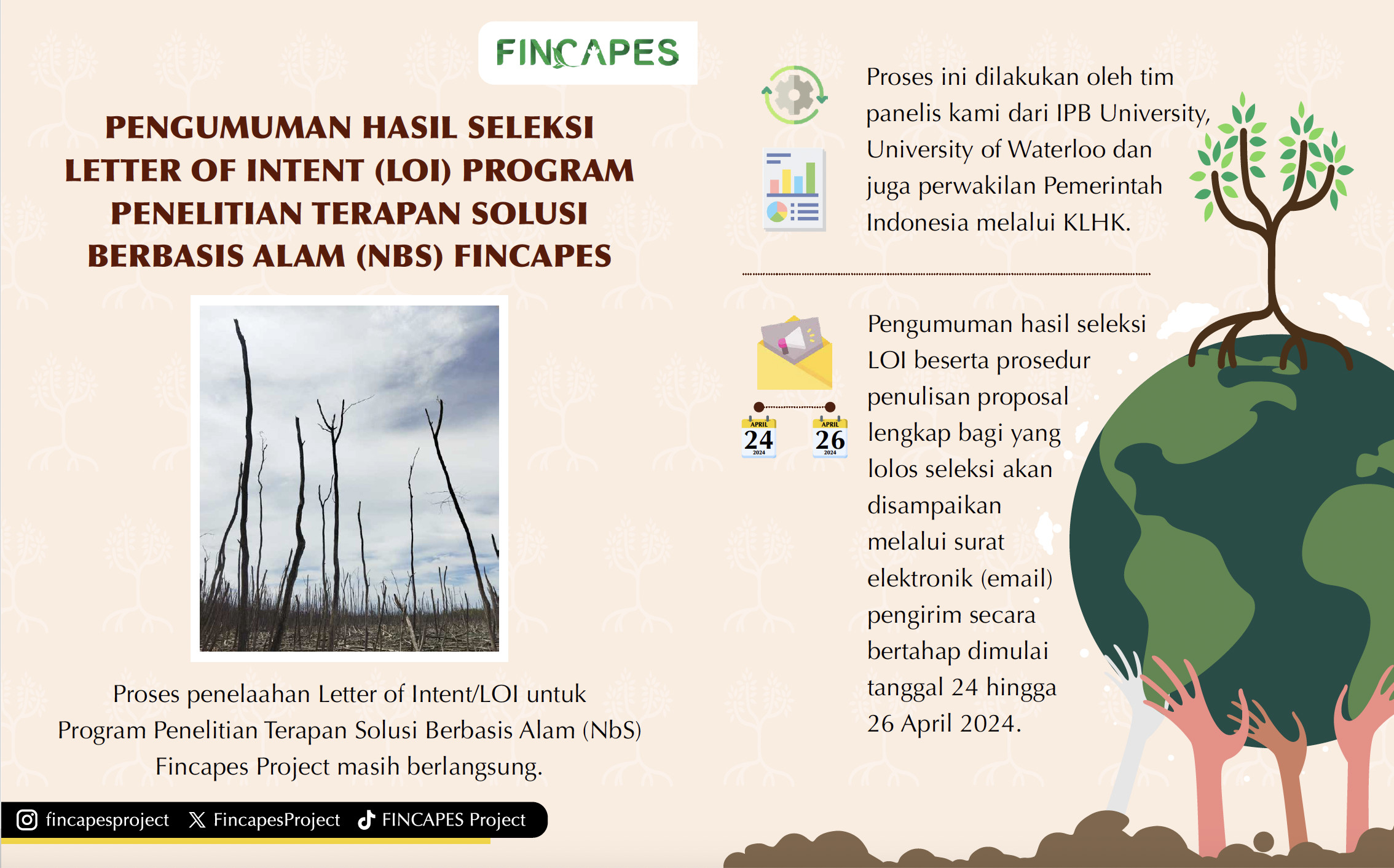 FINCAPES will accelerate the application of Nature-based Solutions (NbS) for peatland and mangrove conservation and restoration, which are critical to Indonesia’s climate adaptation and mitigation efforts. FINCAPES will help establish an NbS applied research center at IPB University to research, develop, and pilot improved NbS techniques and models in target communities, and beyond, to complement Government of Indonesia critical ecosystem restoration efforts. The work will also support biodiversity preservation, carbon absorption, and sustainable livelihoods.
